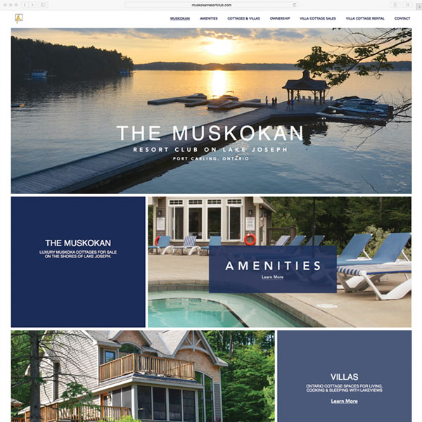 The Muskokan Resort Club is the premiere provider of Villa and Cottage property rentals and purchases in the Muskokas. Cats Media was tasked with providing an ecommerce and booking website that would also showcase this paradise getaway. As is the case with any good website, we needed to also supply a refreshed brand image and new photography and imagery for the client. Brand guidelines were established and a new logo was created to match. Print collateral would include business cards, maps of the grounds, information on the amenities to be placed in each room as well as brochures for visitors to take away if they needed to contemplate their decision. The client was extremely impressed with the changes and have increased website traffic as a result.
